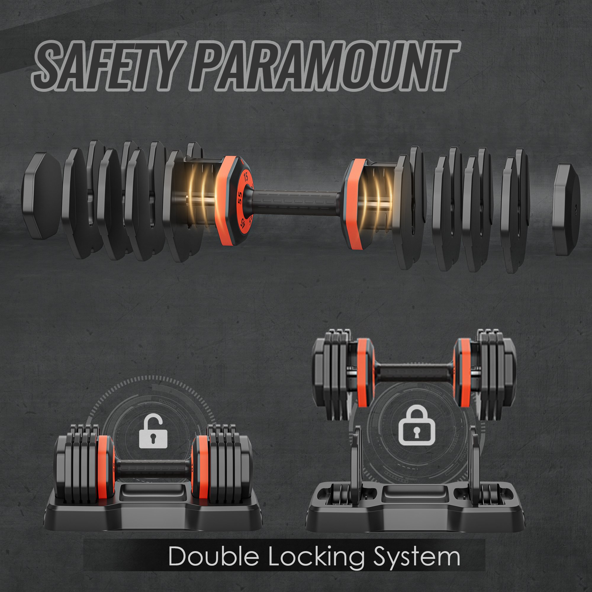 55LB 5 in 1 Single Adjustable Dumbbell Free Dumbbell Weight Adjust with Anti-Slip Metal Handle, Ideal for Full-Body Home Gym Workouts