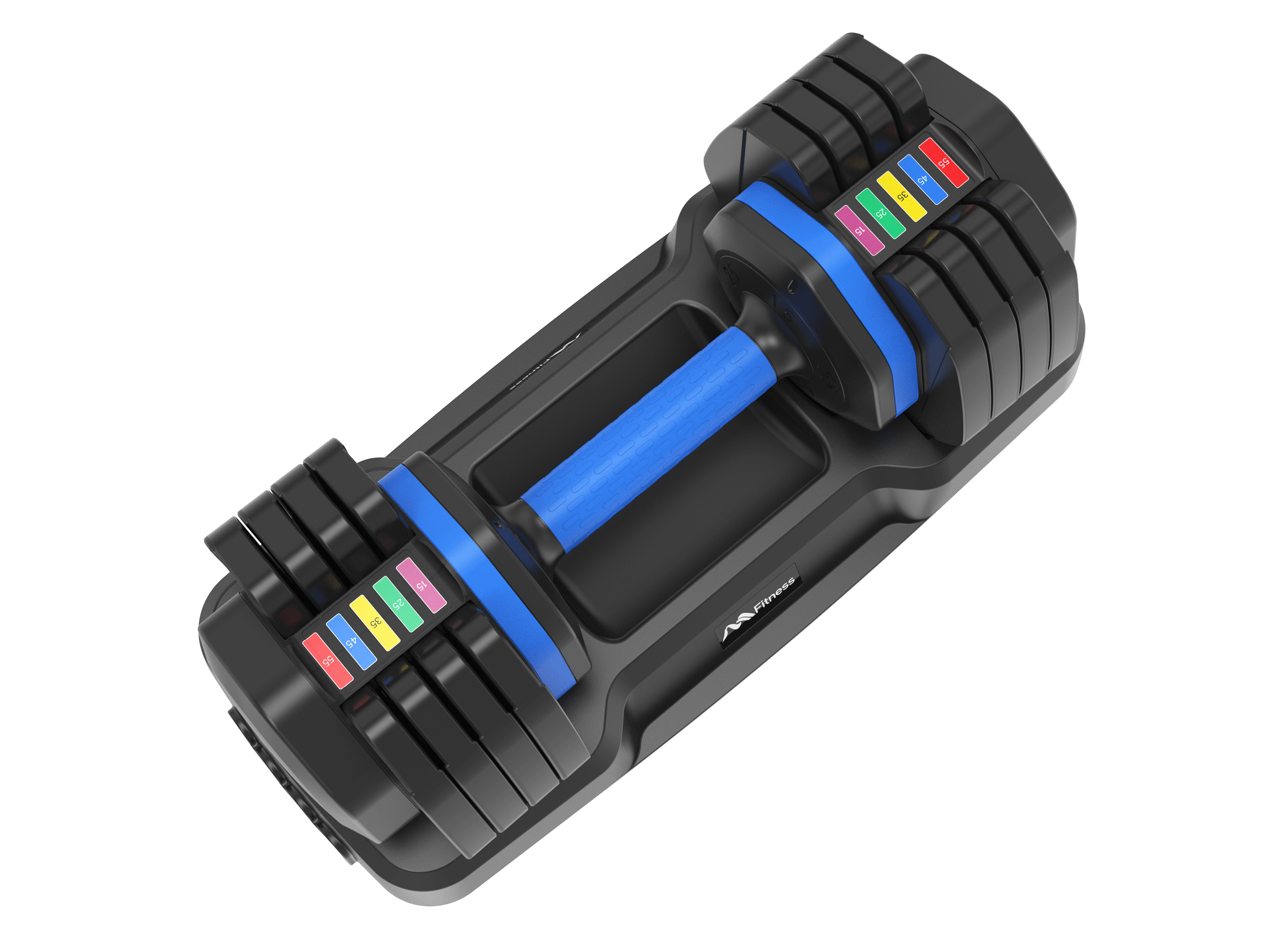- This dumbbell set has a total weight of 55lbs for each one and it has 10lbs adjustable in each level. The user can simply put it on the included tray, and the safety lock will automatically be opened. Just simply rotate the non-slip handle, you can freely switch the dumbbells between five different gears of 15, 25, 35, 45, and 55 lbs. Lift the dumbbell and you can get the load you want. Different from the two-step adjustment on the market, this is a true one-key adjustable dumbbell. It saves you the space of the home gym while getting the most convenient access.- We have designed a unique color weight mark for this adjustable dumbbell, which is very recognizable, and you can intuitively feel the increase in your exercise level. When you share this adjustable dumbbell with your family, each family member can have their own corresponding color label, which increases the fun of exercising together.- As a strength training equipment that users are usually unwilling to purchase repeatedly, product quality is very important. This adjustable dumbbell is all made of high-quality materials, and the most important inner core is made of metal. These elements make it a durable adjustable dumbbell that can accompany you for more time.- As equipment that will accompany you for a long time, its exquisite appearance is also a major advantage of this adjustable dumbbell. The product has been fully polished, with excellent texture, and the color matching of the visually optimized design, making you more willing to spend time lifting it to improve your physical function.- Many thoughtful details are designed to escort your workout. Non-slip handles, easy-to-carry design of the tray base, one-button adjustment + base safety lock, these details protect your exercise experience in all directions. Product size: 19''x8''x7''