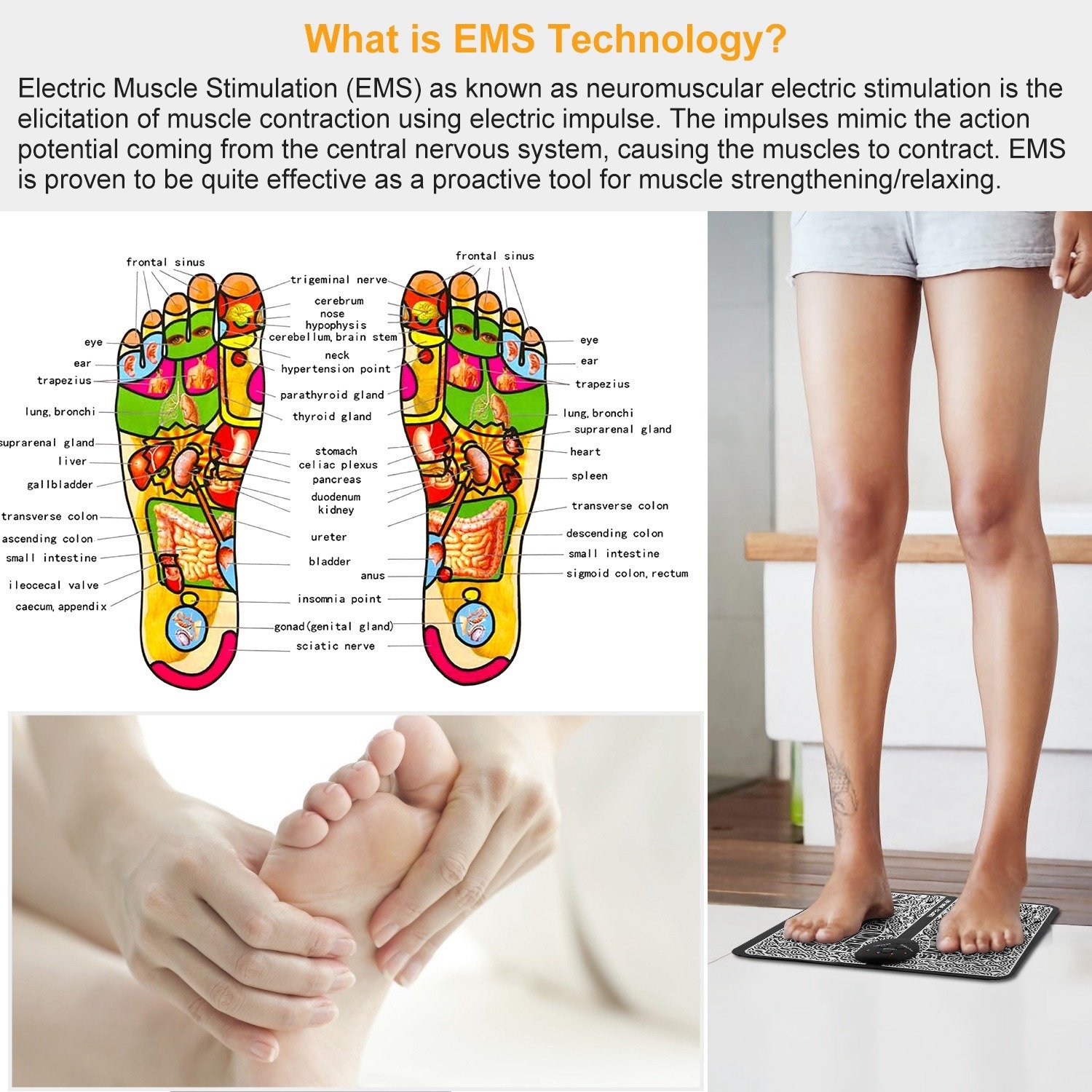 1.Adopt the low frequency pulse technology (EMS) for foot, ankle, muscle massage