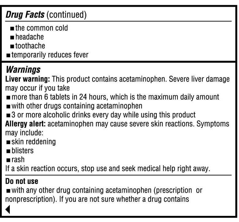 ASPIRIN FREE; GLUTEN FREE: Extended-release caplets (capsule-shaped tablets) each provide 650 mg of acetaminophen; pain reliever; and fever reducer; and contain no aspirin. Effective for minor arthritis pain. This product is gluten-free