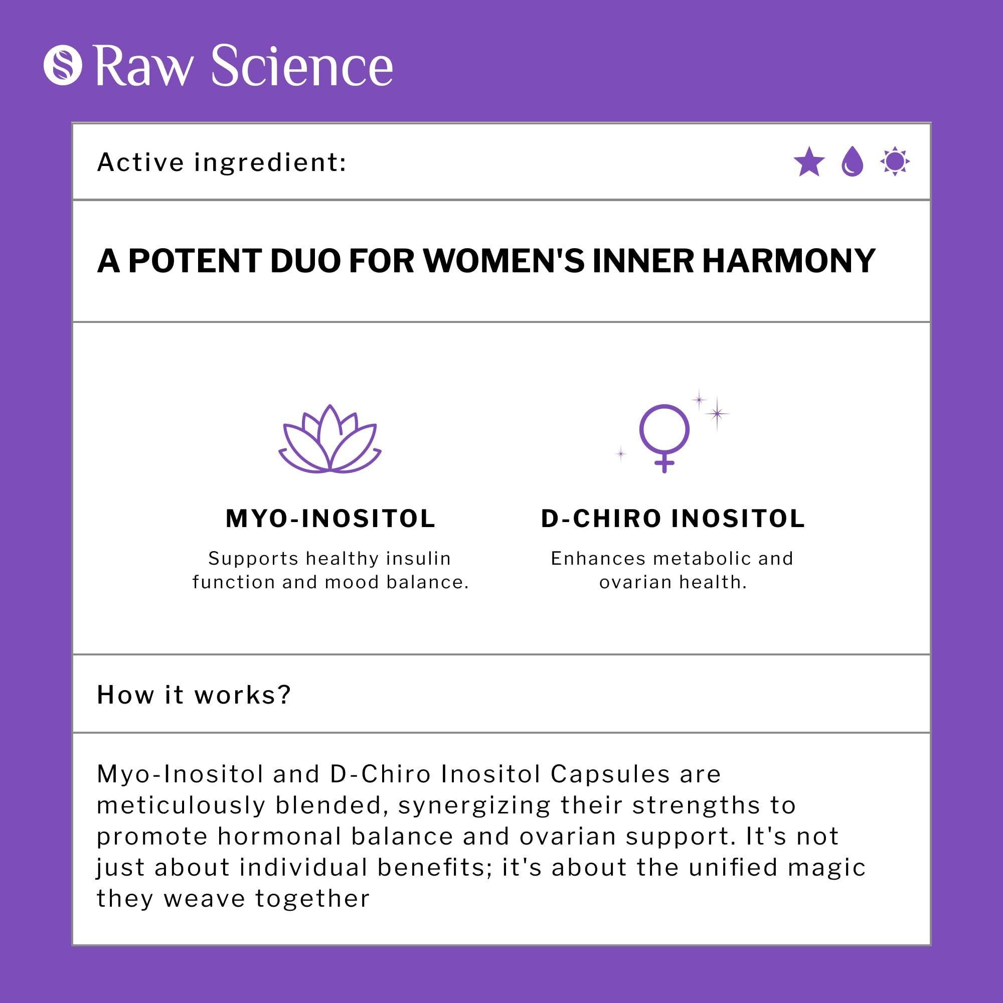 4.fertility support. enjoy the asset of myo inositol & d-chiro inositol and tread a path of balanced well-being. holistic hormonal health - achieve a balanced hormonal state with our myo-inositol & d-chiro inositol capsules, a natural hormone balance supplement. designed for women dealing with hormonal imbalance, this supplement offers a gentle yet effective way to regulate hormonal levels, addressing concerns from hormonal acne to pcos support. preconception support - stepping