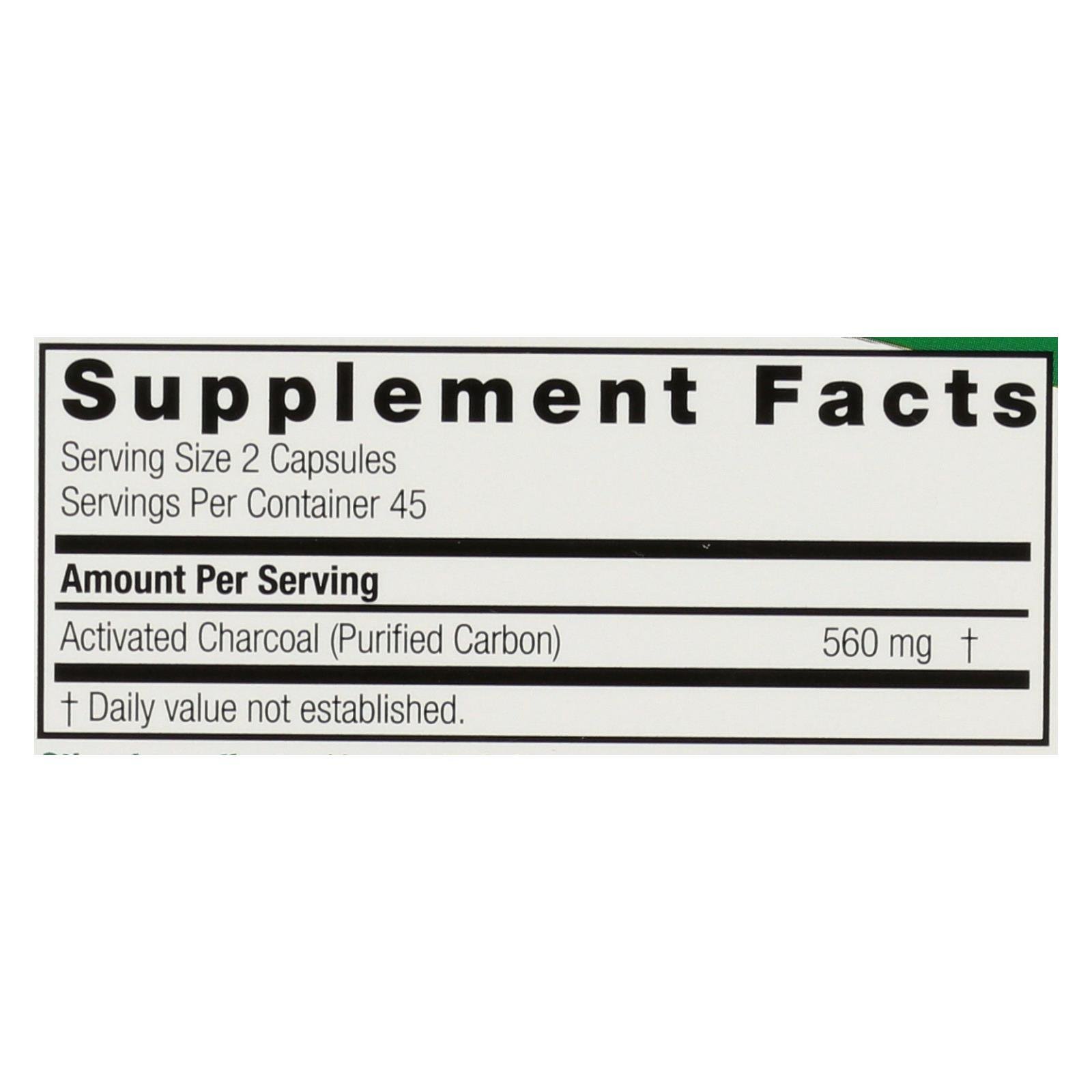 Nature's answer 560 mg. Activated charcoal goes through more than 100 quality control checkpoints, so you get a tested and verified product. Every two capsules from this 90 count bottle deliver 560 mg. Of activated charcoal, and this supplement is suitable for vegetarian-and-vegan diets. Produced by a family-owned business that's based in the u.s.a., this cruelty-free supplement was produced in a cgmp-certified facility.