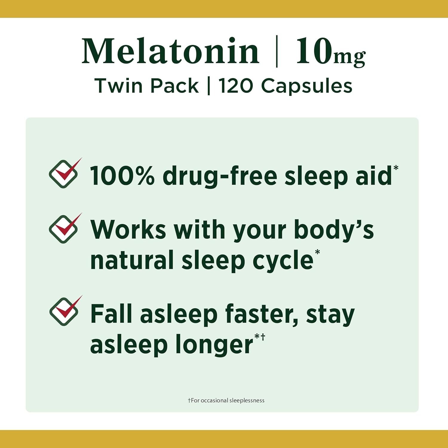 Nature's Bounty Melatonin, Promotes Relaxation and Sleep Health, 10mg, Capsules, 60 Ct (2 Pack) Nature's Bounty Melatonin, Promotes Relaxation and Sleep Health, 10mg, Capsules, 60 Ct (2 Pack) Nature's Bounty Melatonin, Promotes Relaxation and Sleep Health, 10mg, Capsules, 60 Ct (2 Pack) Nature's Bounty Melatonin, Promotes Relaxation and Sleep Health, 10mg, Capsules, 60 Ct (2 Pack) Nature's Bounty Melatonin, Promotes Relaxation and Sleep Health, 10mg, Capsules, 60 Ct (2 Pack)