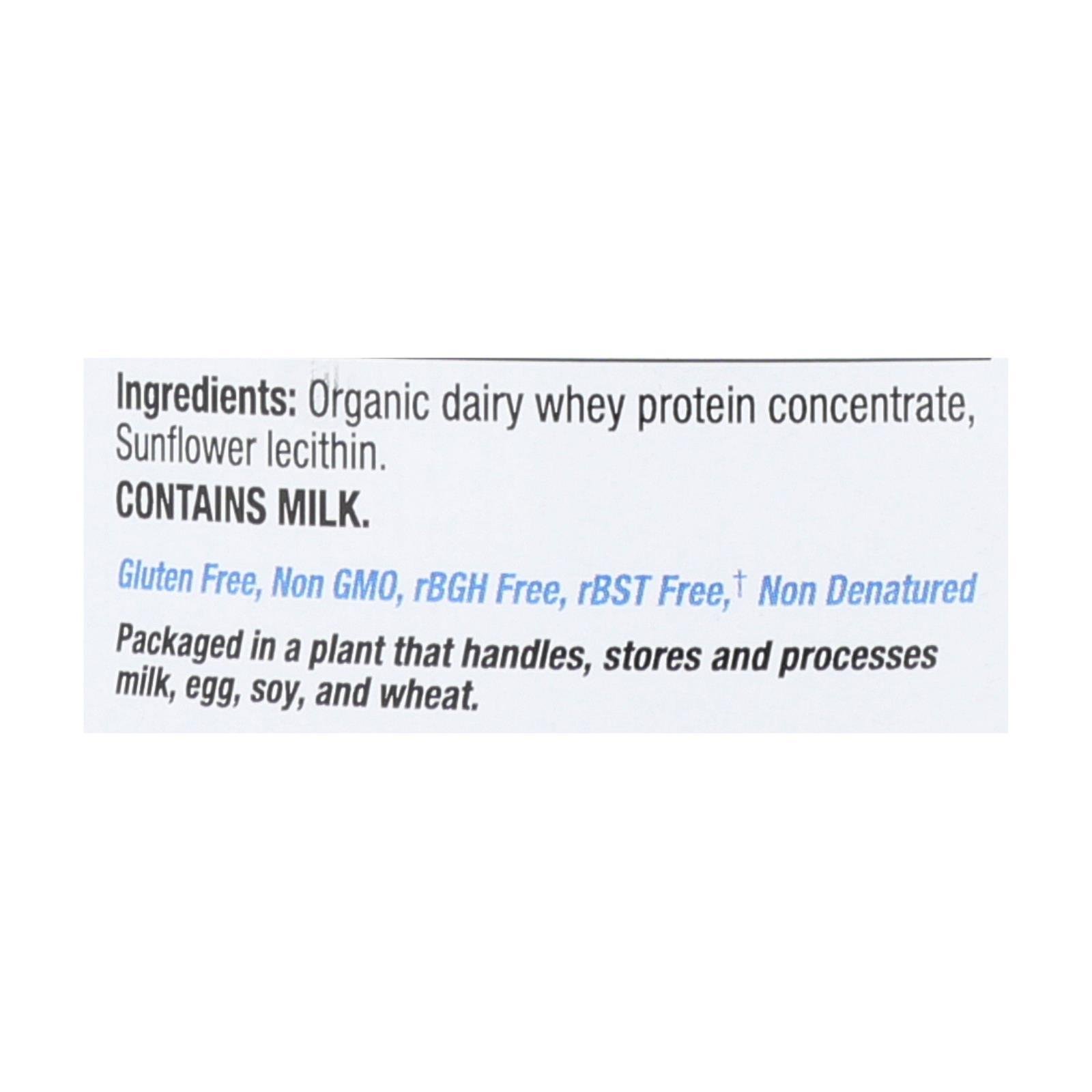 ingredients : organic dairy whey protein concentrate;sunflower lecithin