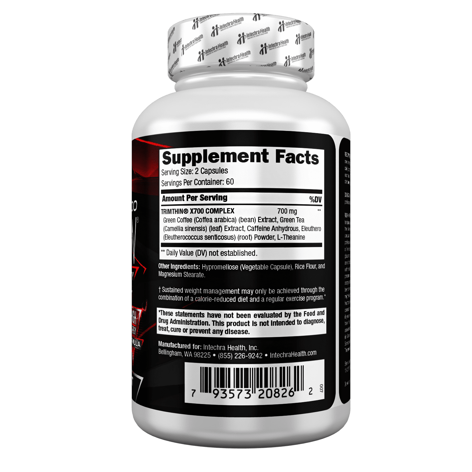 NEW in 2023 - TRIMTHIN X700 is now sold in gluten-free, VEGGIE capsules. Our formula no longer contains dyes or gelatin! This means that every capsule of TRIMTHIN X700 contains key ingredients for a fitness supplement that can truly increase your potential during exercise and support your diet efforts. It also promotes enhanced focus, so you can get intense about what you want and go after it with full force.