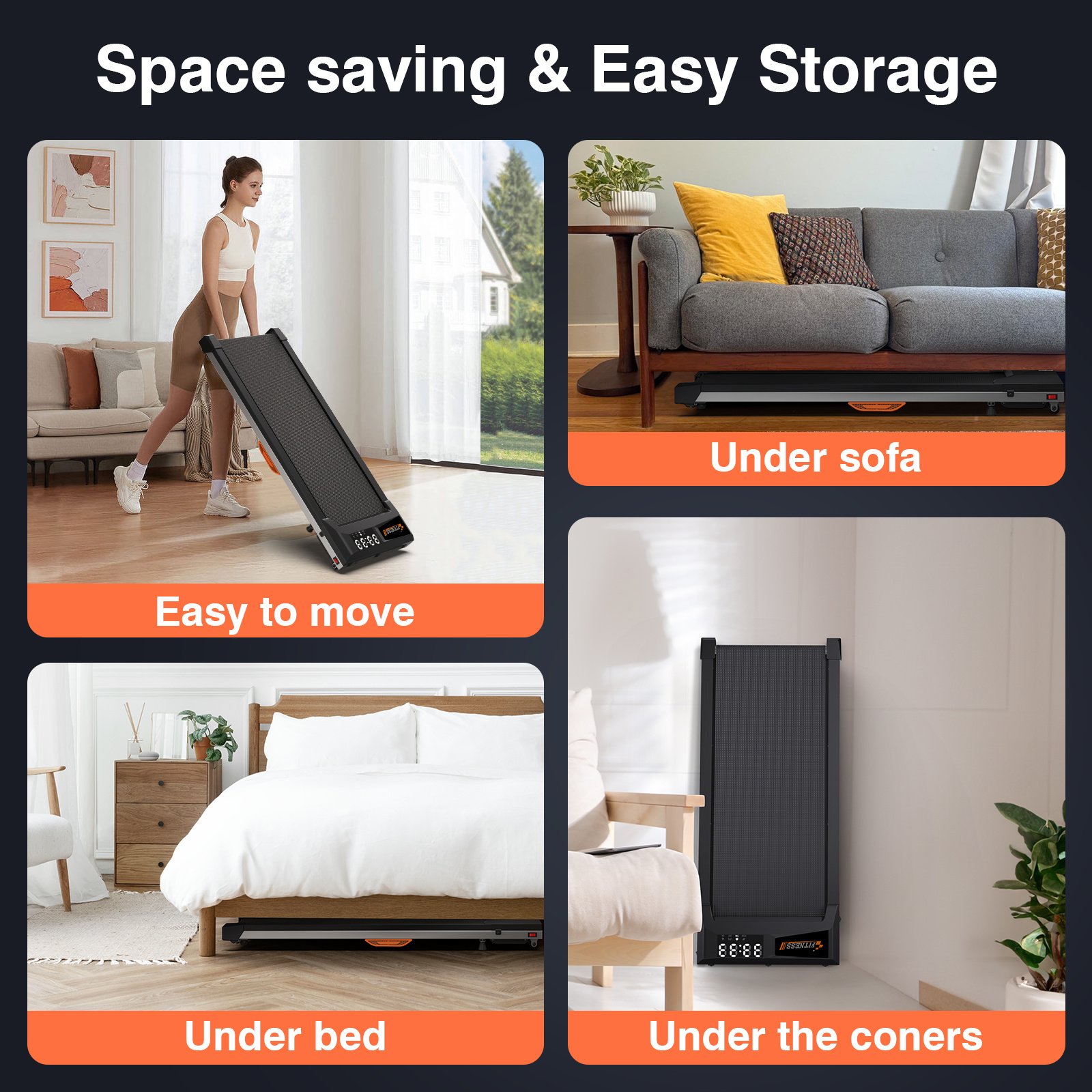 Space saving &Easy StorageSave space with this compact walking pad treadmill that can easily fit underneath your desk or in any room of your home. Its sleek and portable design allows you to work out anytime, anywhere, without taking up valuable space. Say goodbye to bulky treadmills that clutter your home - the Walking Pad Treadmill is here to streamline your fitness routine.